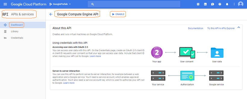 • From the API Dashboard ensure that the following APIs are Enabled: