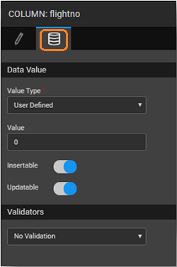 • If the Value Type is selected as User Defined or Server Defined, both Insertable and Updatable options are selected by default. You can edit the options, but at least one option has to be selected.