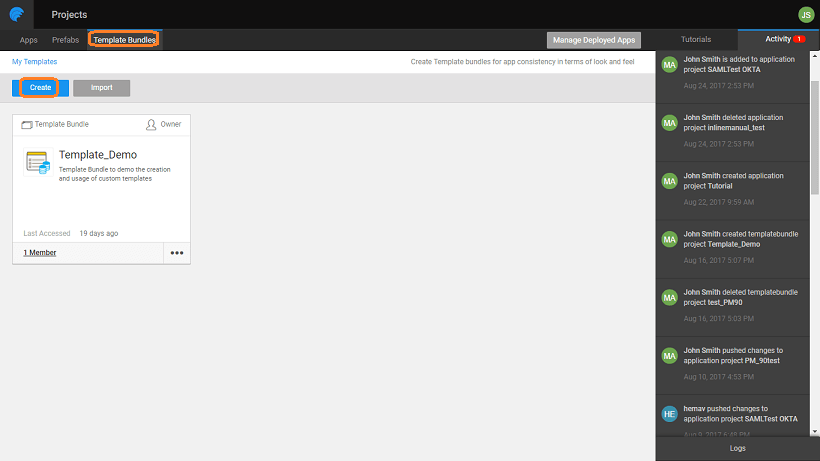 Template Bundles let you create and use templates across all applications in your enterprise. You can get a UI designer to design the Template Bundle. This document lists the steps in the creation of a Template Bundle.