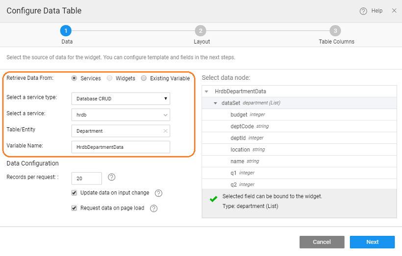 We will show the steps in creating Variable using the Data Table widget. The steps will be same for any Data Widgets