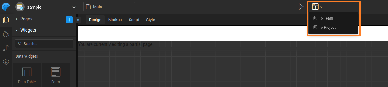 • Publish to Team (only for team version) – Approval by Team Admin. Once approved, Prefab has to be explicitly be imported for use within an application.