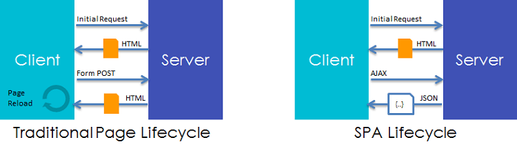 Single-Page Applications (SPAs) are Web apps that load a single HTML page and dynamically update that page as the user interacts with the app. WaveMaker embraces the Single Page app model as against the traditional model, where the markup and other UI artifacts are generated on the server-side for each request and sent to client.