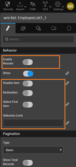 3. Item Reordering: Enable reorder will allow users to reorder the list items at run-time.