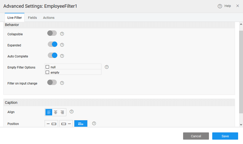 • Collapsible and Expanded options will allow you to expand and collapse the Live Filter like a panel widget.
