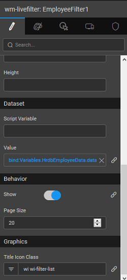 • You can specify the number of records to be fetched via the Page Size property of the Live Filter. By default, this value is set to 20.