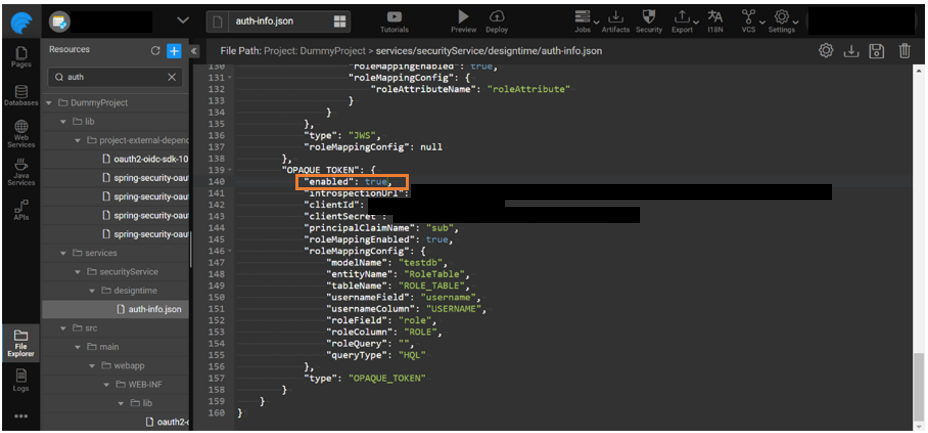 2. Under the OPAQUE_TOKEN section set enabled as true.