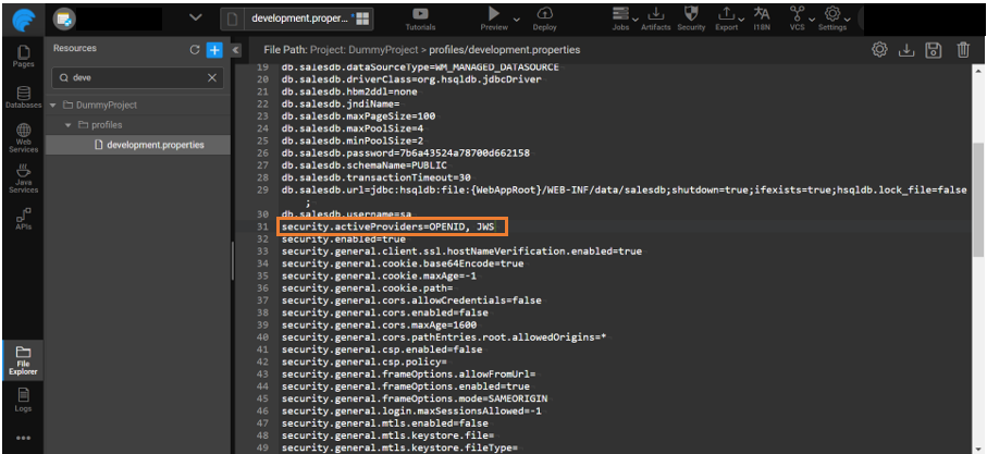 1. Update the property security.activeProviders by adding JWS to it. Example: DEMO, JWS.