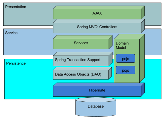 • Layer 3: DAO Layer - responsible for interacting with the underlying database. This code uses Hibernate framework.