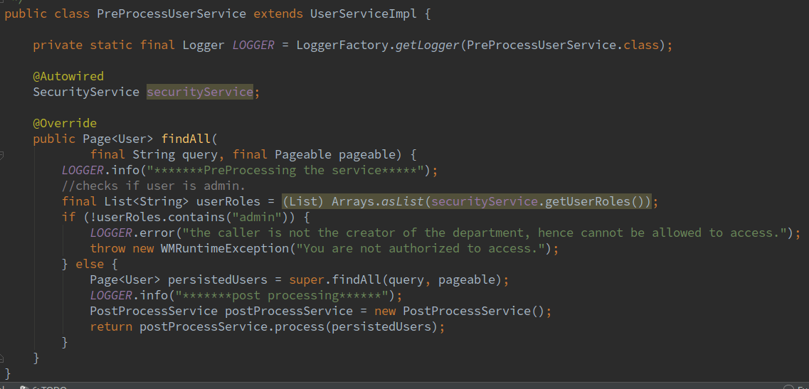 public class PreProcessUserService extends UserServiceImpl {