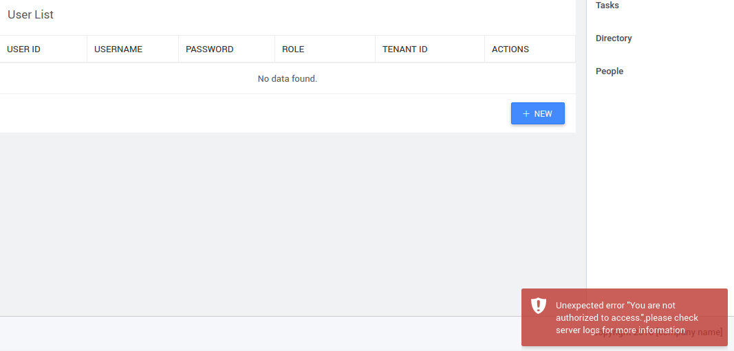 For other users, an error is thrown as shown below.