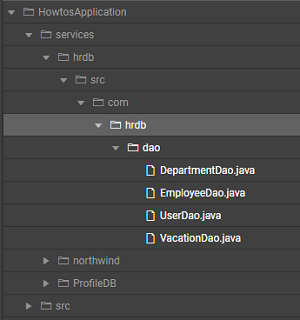 In this example we have implemented the first way, i.e. delegate to superclass. A service is written to check if the login user is an admin and if the user is admin then the user details are fetched. Find below the code for both PreProcessService and PostProcessService classes Note : Please create these classes in an IDE and copy it in path specified in the following screenshot, see here to know how to work with IDE.