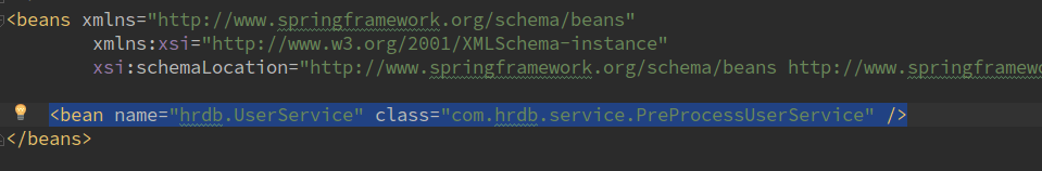 • Now in project-user-spring.xml add the bean to declare the Service which user has defined.