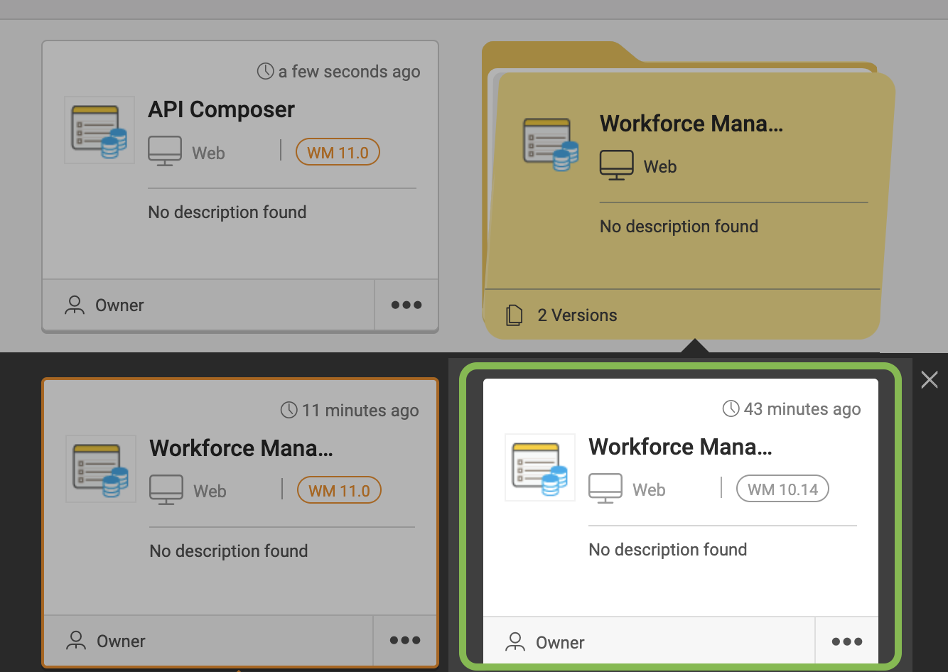 From this project card, you will access the app in the WaveMaker 11 version of the project.