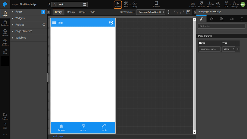 Preview is recommended only for test or trial purposes as the application is deployed to the WaveMaker server provided with WaveMaker. When you stop WaveMaker, using the WaveMaker console, the application stops too. Using the WaveLens app, you can test run the hybrid mobile apps directly using any smartphone.