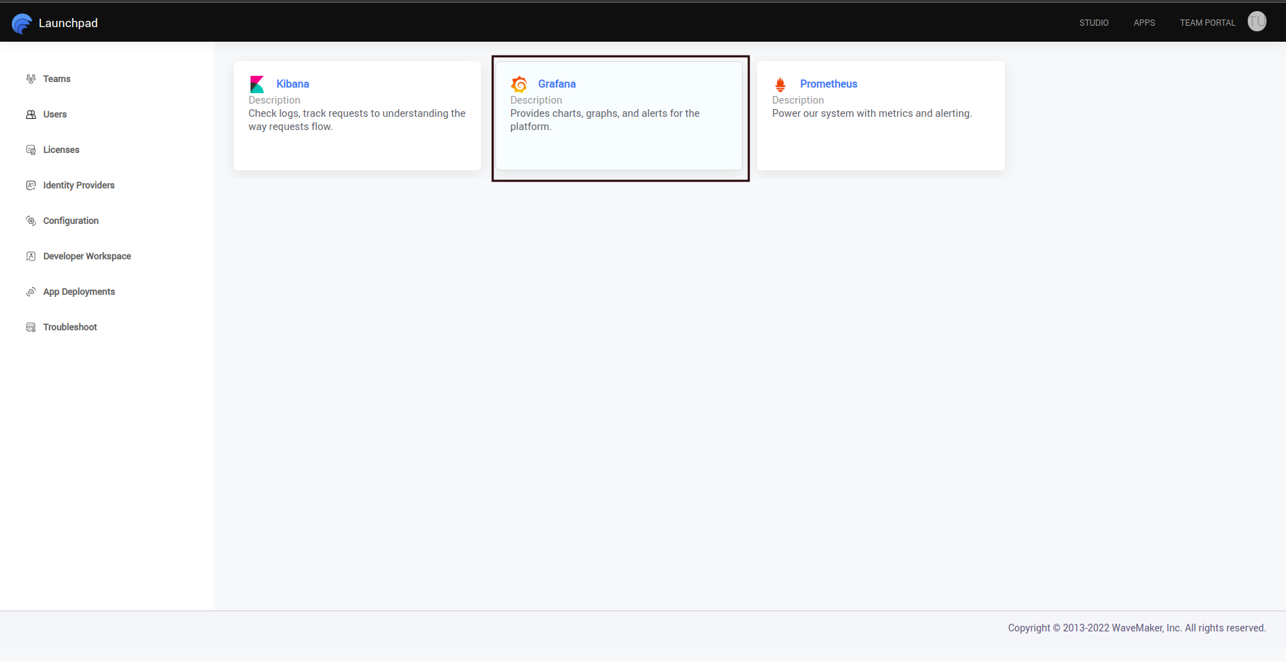 1) After the WaveMaker login, open the Launchpad and click the Troubleshoot located on the bottom left as shown below.