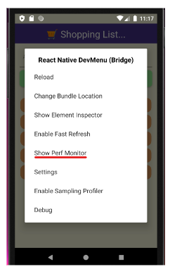 2. Open up your Dev Menu and select Show Perf Monitor